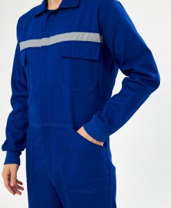 Fabrikalarda ve çeşitli tesislerde iş kıyafeti olarak kullanılan tulumlar çeşitli özelliklerde ve kumaşlarda üretim yapılmaktadır. Örneğin burda dikkate alınan bütün iş tulumu saks mavi reflektörsüz olan tulumumuzu inceleyelim.