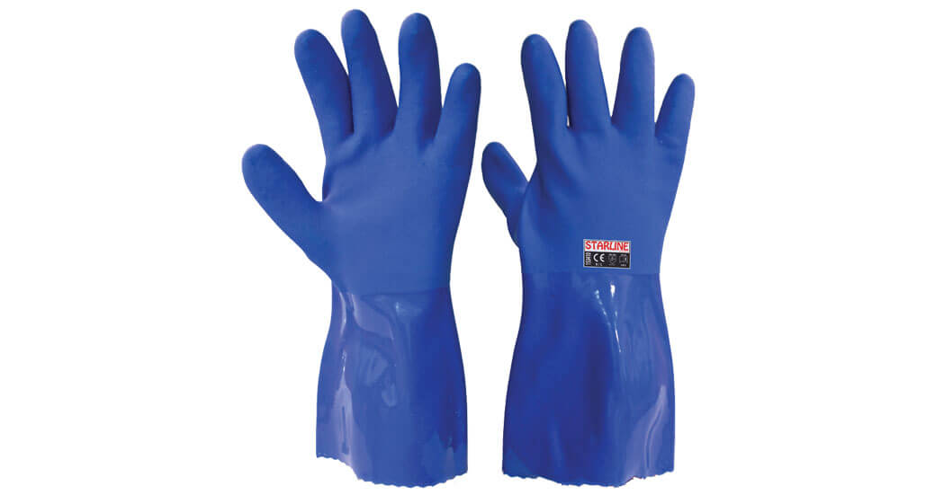 - PVC Su geçirmez ve kimyasallara dirençli iş eldiveni.